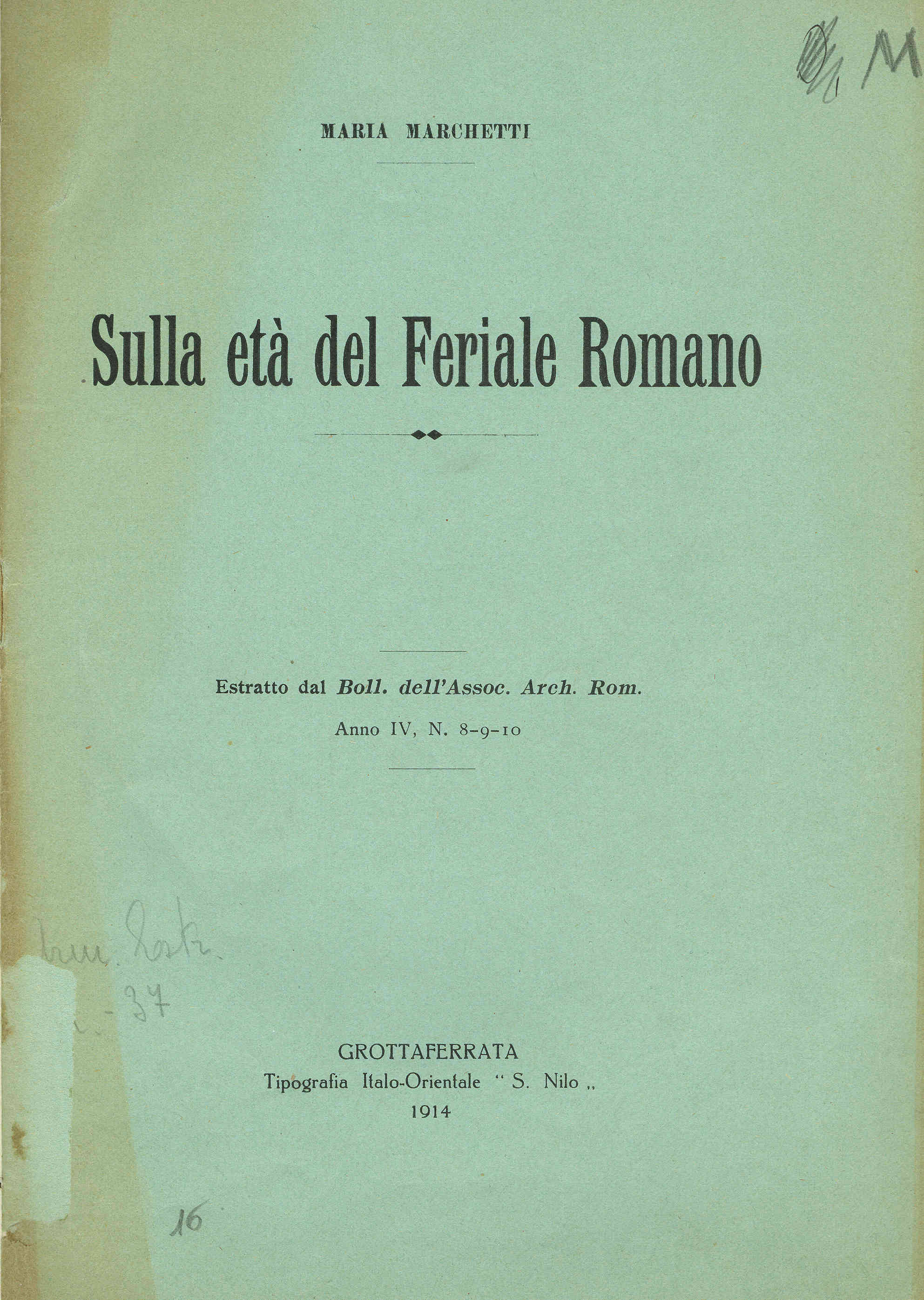 Luogo di edizioni: Grottaferrata
